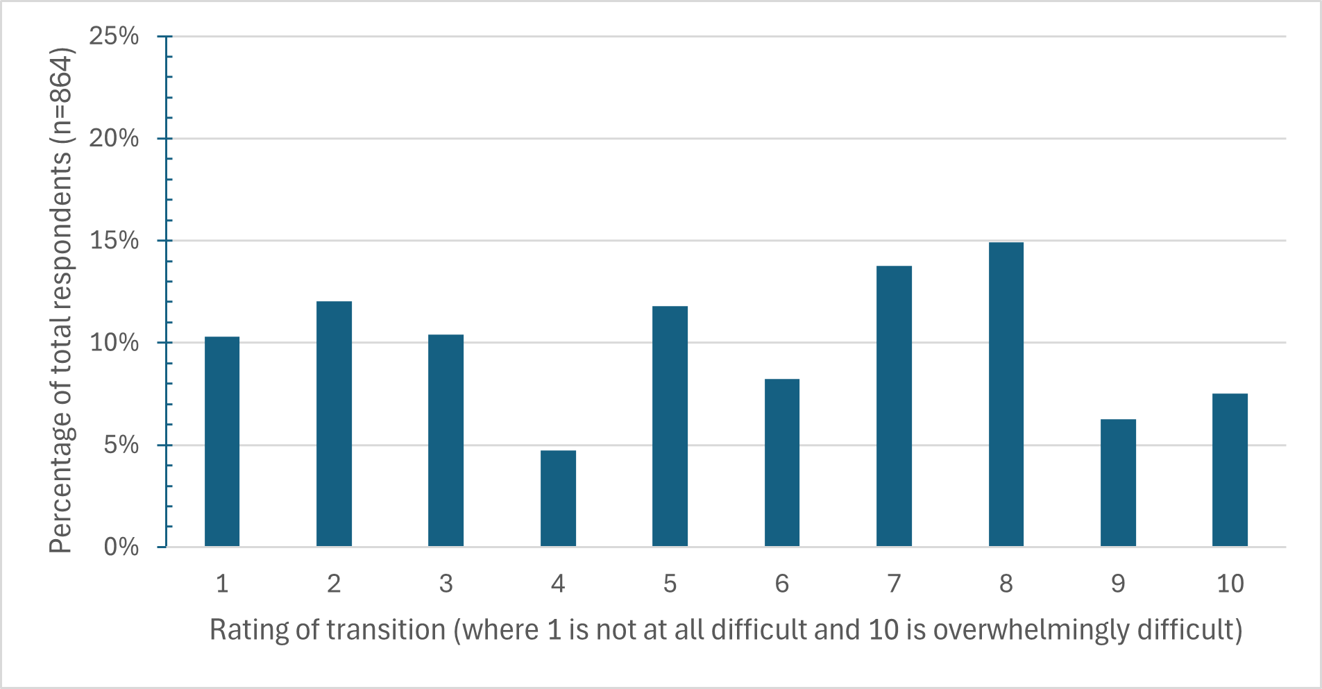 Figure 1. Spread of transition ratings for Victorian Veterans Needs research data (n=864).