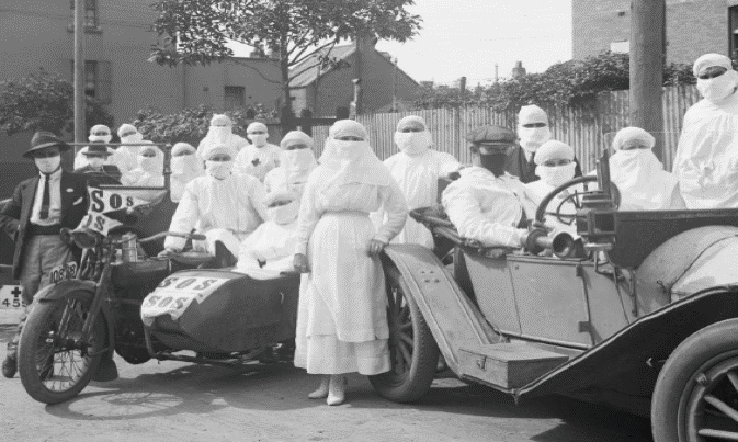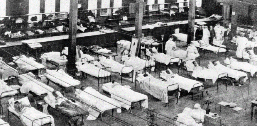 In 1918, towards the end of World War I, the world suffered the worst pandemic since the Black Death (Great Bubonic Plague of 1346–1353, which killed an estimated 75+ million). The 1918–19 Influenza Pandemic killed more than 50 million people worldwide and was erroneously called the ‘Spanish Influenza’ as it was neutral Spain that first reported the outbreak that is now widely accepted as having originated in the United States in late 1917. The disease was taken to Europe by US troops where it spread throughout Britain and France during 1918.1 There were three waves of the virus as it mutated, and these became more and more virulent as the disease spread worldwide.2